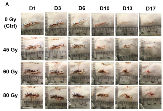 22. Gorodetsky, R.; McBride, W.H.; Withers, H.R. Assay of radiation effects in mouse skin as expressed in wound healing. Radiat. Res. 1988, 116, 135–144. [Google Scholar] [CrossRef] [PubMed]