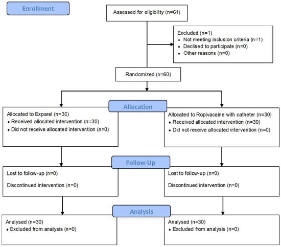- Sabesan, V.J.; Shahriar, R.; Petersen-Fitts, G.R.; Whaley, J.; Bou-Akl, T.; Sweet, M.; Milia, M. A prospective randomized controlled trial to identify the optimal postoperative pain management in shoulder arthroplasty: Liposomal bupivacaine versus continuous interscalene catheter. J. Shoulder Elb. Surg. 2017, 26, 1810–1817. [Google Scholar] [CrossRef] [PubMed]