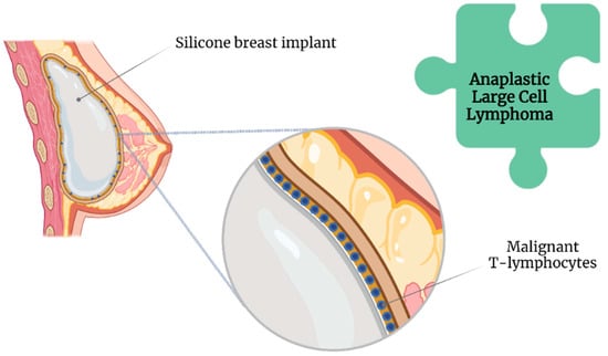 - Turner, S.D.; Inghirami, G.; Miranda, R.N.; Kadin, M.E. Cell of Origin and Immunologic Events in the Pathogenesis of Breast Implant–Associated Anaplastic Large-Cell Lymphoma. Am. J. Pathol. 2020, 190, 2–10. [Google Scholar] [CrossRef] [Green Version]