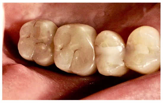 The final diagnosis of idiopathic osteosclerosis was confirmed. A six-month follow-up showed good healing, and prosthesis on dental implants was performed (Figure 8, Figure 9 and Figure 10).