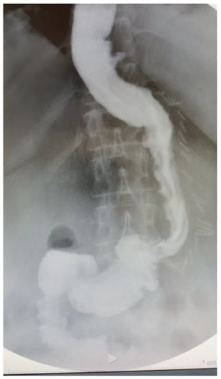 - Marano, L.; Reda, G.; Porfidia, R.; Grassia, M.; Petrillo, M.; Esposito, G.; Torelli, F.; Cosenza, A.; Izzo, G.; Di Martino., N. Large symptomatic gastric diverticula: Two case reports and a brief review of literature. World J. Gastroenterol. 2013, 19, 6114–6117. [Google Scholar] [CrossRef] [PubMed]