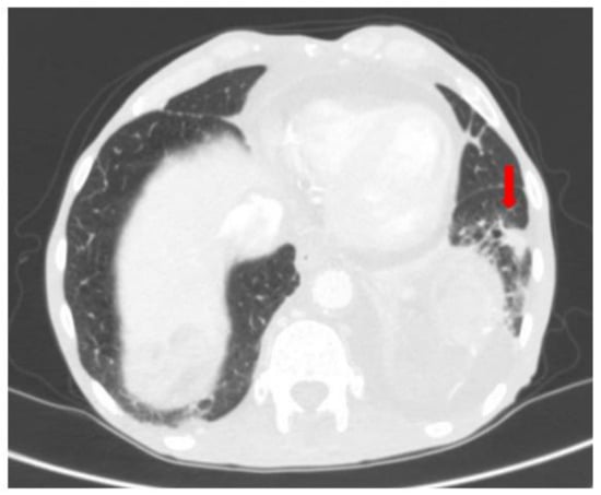 Laboratory test reported a hemoglobin value of 5.9 g/dL (12.5 g/dL < n.v. < 17.2 g/dL), with AST 68 U/L (0 U/L < n.v. < 50 U/L), ALT 61 U/L (0 U/L < n.v. < 50 U/L), lipase 1204 U/L (0 U/L < n.v. < 67 U/L), and C-reactive protein (CRP) 3.51 mg/dL (0 mg/dL < n.v. < 0.5 mg/dL). The patient was subjected to multiple transfusions, due to the documented severe anemia.