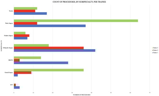 Count of procedures by type per trainee.