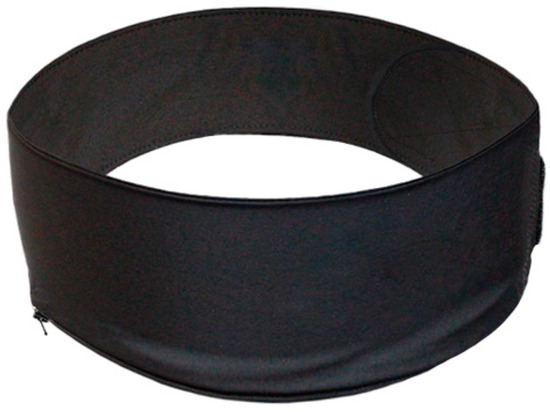 Consenting volunteers with stomas were provided with an ostomy belt (Stealth belt brand) to use during the study (Figure 1 and Figure 2). Ostomy belts were provided free of cost to the patient. The goal of ostomy support belts is to prevent the appliance from shifting around, disconnecting from the flange, or falling off accidentally, and to help promote self-confidence when returning to daily activities after surgery. The ostomy belt is positioned either horizontally or vertically depending on style. The appliance is then inserted through the flange hole in the belt and Velcro is attached with adjustment for a comfortable fit. The zipper is then closed on the bottom of the belt, enclosing the appliance in the pouch of the belt. Patients were instructed to wear the belt for the 2-month study duration and were instructed that the belt can be worn comfortably 24 h a day through daily activities including sleep, sport, and intimacy.