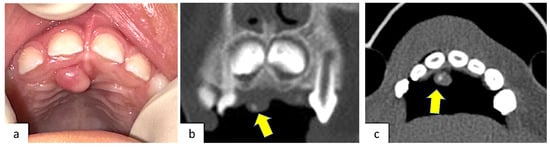 - Mikami, T.; Yagi, M.; Mizuki, H.; Takeda, Y. Congenital peripheral developing odontoma accompanied by congenital teratomatous fibroma in a 9-month-old boy: A case report. J. Oral Sci. 2013, 55, 89–91. [Google Scholar] [CrossRef] [PubMed]