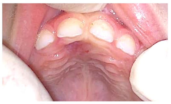 - Tavares, T.S.; Da Costa, A.A.S.; Freire-Maia, F.B.; Souza, L.N.; Zarzar, P.M.; Martins-Júnior, P.A.; Aguiar, M.C.F.; Mesquita, R.A.; Caldeira, P.C. Unusual Exophytic Gingival Lesion in a Newborn Treated with Diode Laser. Oral Surg. Oral Med. Oral Pathol. Oral Radiol. 2020, 130, e74–e79. [Google Scholar] [CrossRef] [PubMed]