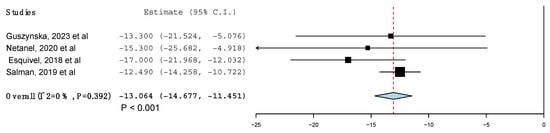 | Netanel et al., 2020 [15] | 26 | NR | NR | NR | NR | NR (NR) | 32.2 (17.6) | NR | 41.4 (22.6) | NR | 41.7 (4.8) | NR | |