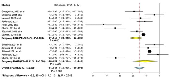 Chicago/Turabian StyleAlRumaih, Abdullah Sulaiman, Lama Abdullah Alzelfawi, Ghadah Khalid Alotaibi, Osamah AbdulAziz Aldayel, Abdulrahman Khazzam AlMutairi, Rosana Tariq Alnowaimi, Mubarak Mohammed Alshahrani, Rifal Sami Alsharif, and Sarah Nabil Almadani. 2024. "Effectiveness of Bariatric Surgeries for Metabolic Dysfunction-Associated Steatotic Liver Disease: A Systematic Review and Meta-Analysis" Surgeries 5, no. 3: 486-498. https://doi.org/10.3390/surgeries5030040