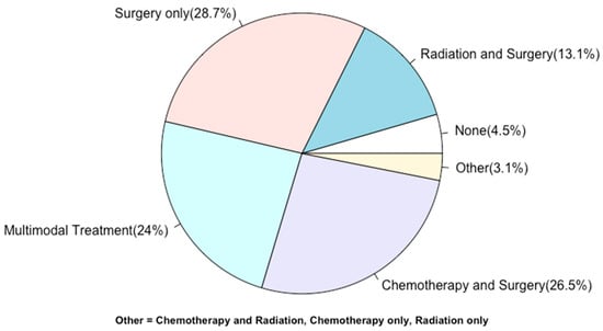 In patients for whom the modality of therapy was known, the most common treatment was surgery, followed by surgery with adjuvant chemoradiation (Figure 1).