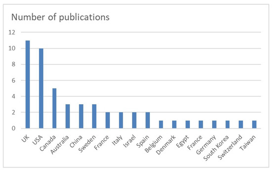 Countries of origin of the included studies. UK: United Kingdom; USA: United States of America.