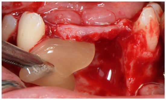 To promote better soft tissue healing, plasma rich in growth factors or PRGF (Endoret, BTI, Vitoria-Gasteiz, Spain) fraction F2 and PRGF membrane fraction F1 were prepared according to the manufacturer′s procedure and inserted into the wound and sutured with 3–0 absorbable sutures (Figure 5).