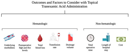 Common outcomes measured in studies assessing the efficacy of topical TXA; figure created in BioRender, A, R. (2025). https://BioRender.com/h76a739 (accessed on 17 January 2025).