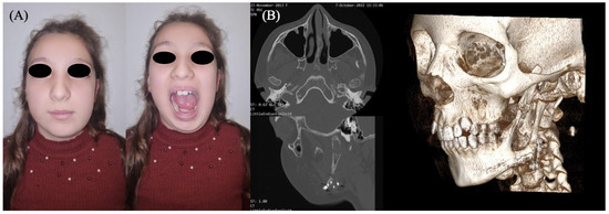 An 8-year-old female patient was referred to the Department of Oral and Maxillofacial Surgery of the Salus Italo-Albanian Hospital of Tirana for evaluation of a progressively enlarging, firm swelling involving the middle and lower thirds of the left hemiface (Figure 1). The lesion had been first noted approximately one year prior and had shown continuous enlargement over time. Intraoral examination revealed a mass involving the left mandibular alveolar ridge, with increased mobility of the posterior mandibular teeth upon palpation.