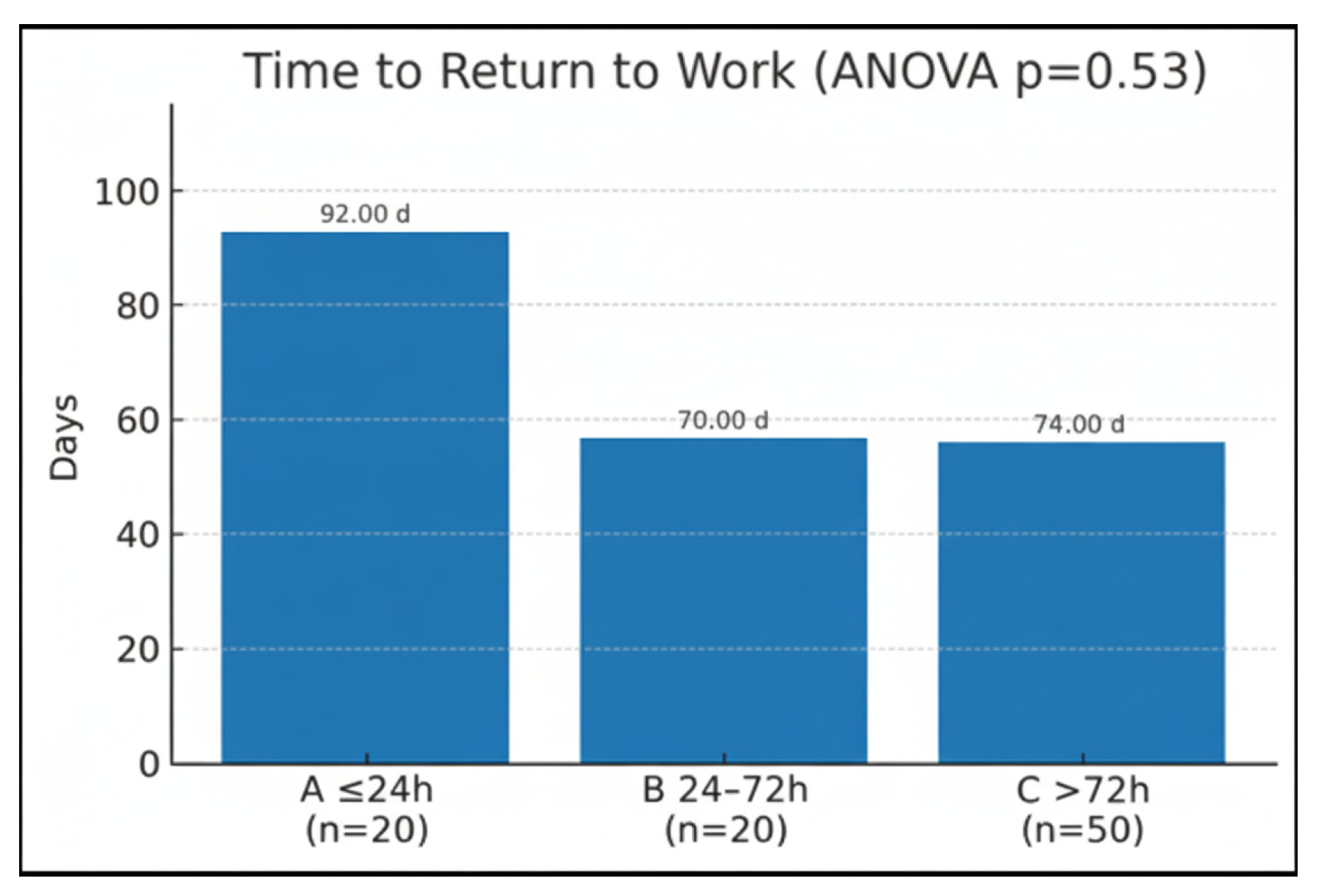 Return to work was compared using a one-way fixed-effects ANOVA. The analysis produced a two tailed