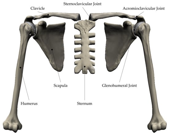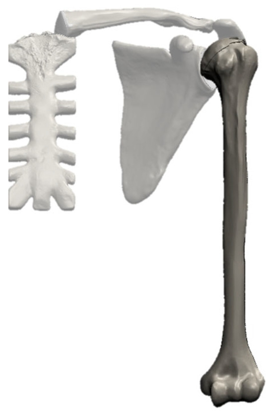Therefore, for this study, the four main bone structures present in Figure 2 were considered: Humerus, Scapula, Clavicle, and Sternum.
