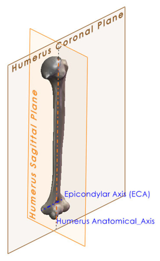 The three defined planes will serve as a basis for parameterizing of the remaining geometric characteristics of the Humerus.