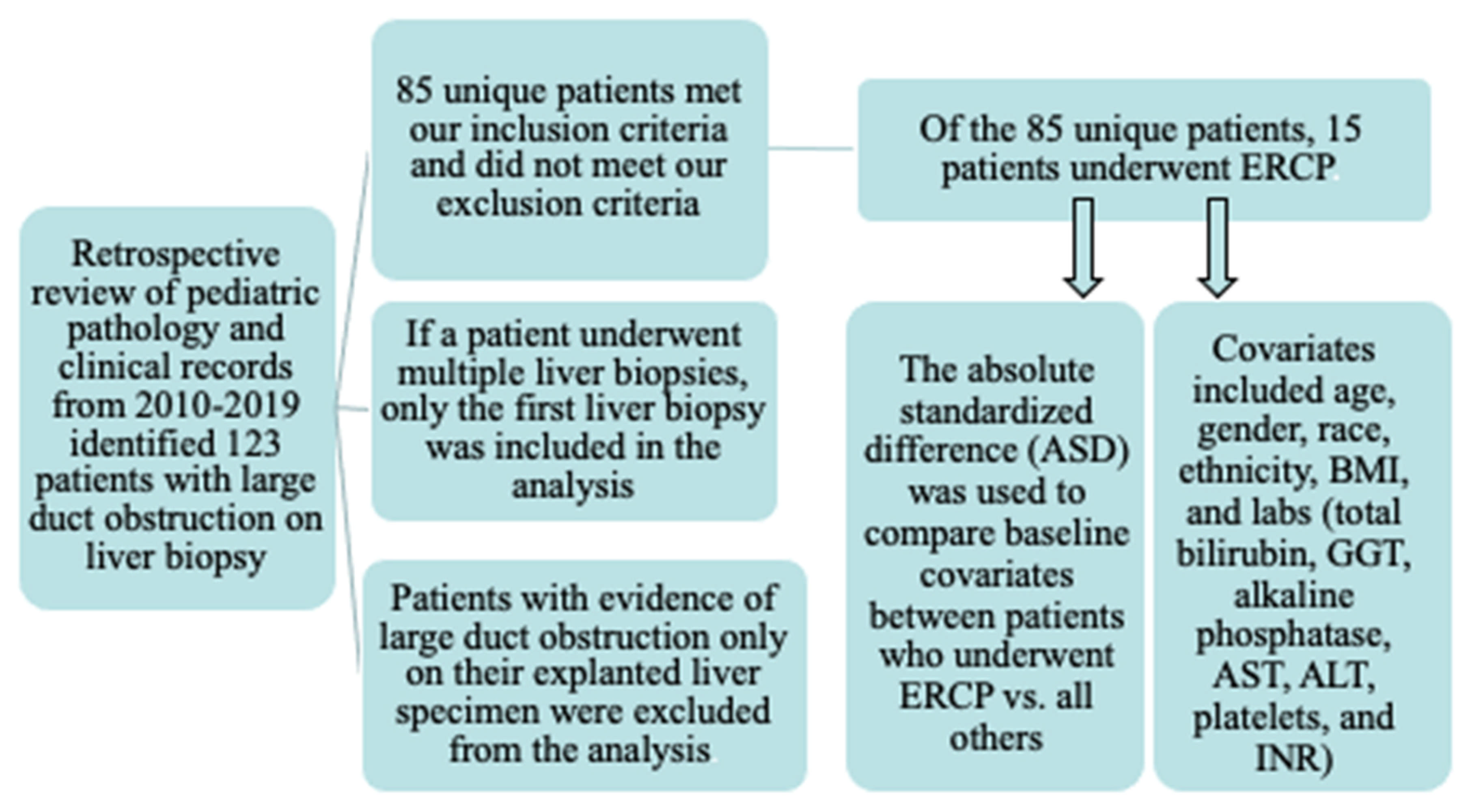 - Martin, M.; Lee, J.; Gugig, R.; Ofosu, A.; Charville, G.W.; Barakat, M.T. The Majority of Patients Who Undergo ERCP When Large Duct Obstruction Is Evident on Liver Biopsy Have Biliary Findings Amenable to Endoscopic Intervention. J. Clin. Med. 2023, 12, 482. [Google Scholar] [CrossRef] [PubMed]
