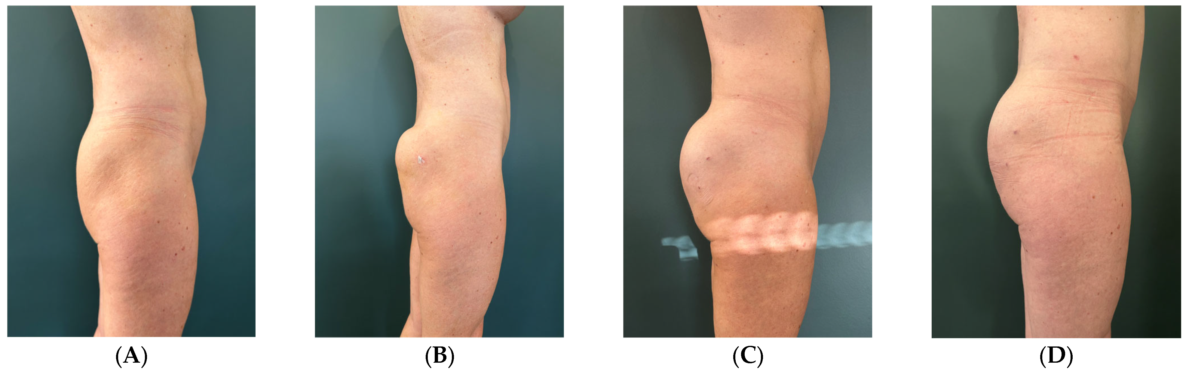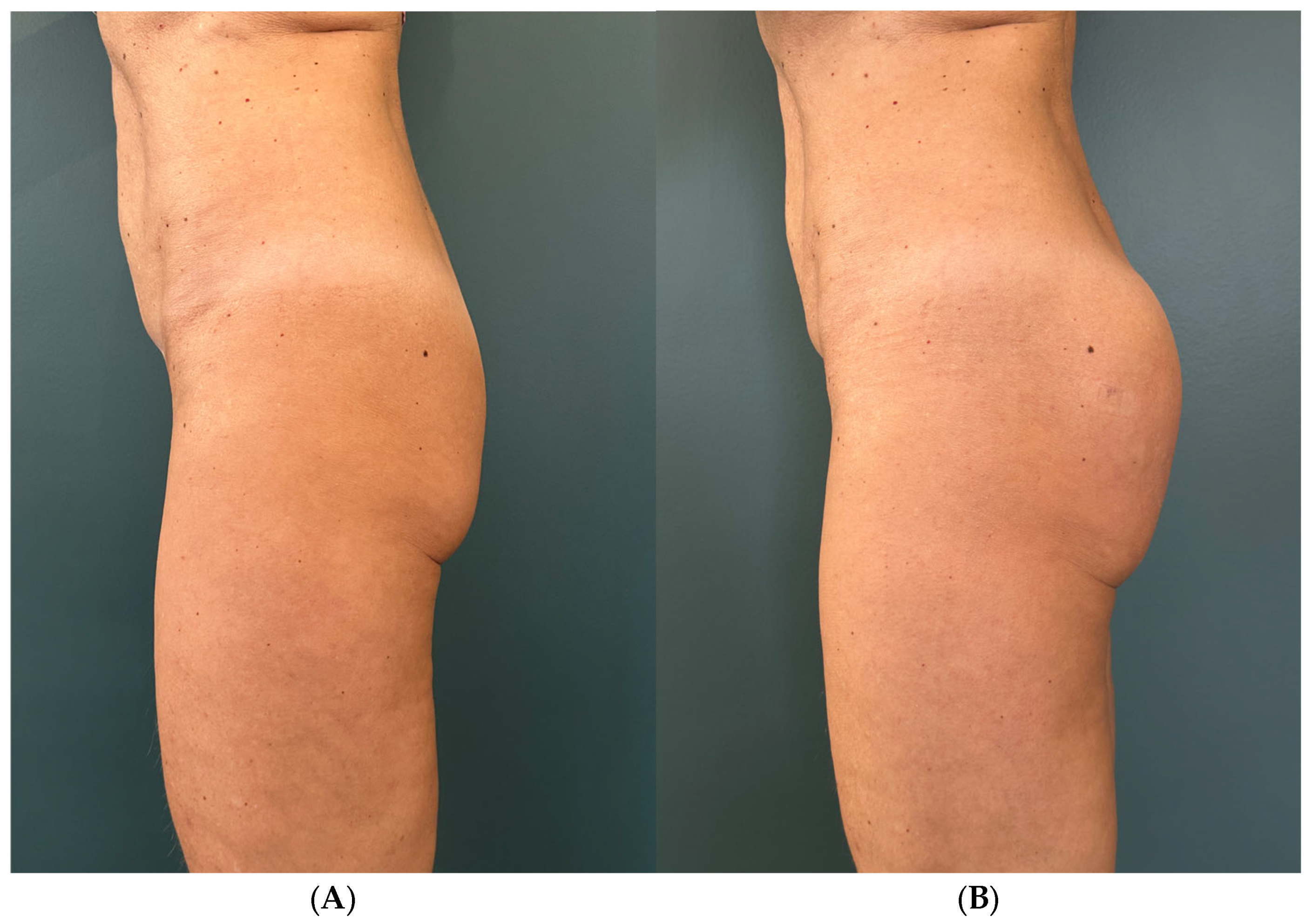 8], and that the goal is not to replicate the outcomes of surgical gluteoplasty but to achieve harmonious volumization, improved support of the upper quadrants, and a reduction in infragluteal fold prominence.