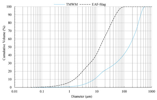 Particle size distribution of TMWM and EAF-Slag.