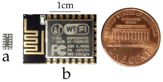 (a) The ADXL345 chip is an example of a MEMS-based sensing device. (b) The ESP8266 is an example of a wifi-enabled edge device.