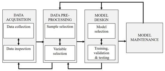 The development and maintenance of soft sensor models is categorised by [28] into four stages, as depicted in Figure 4. These are data acquisition, data pre-processing, model design and model maintenance. The remainder of this section discusses what we consider to be the most important aspects of the first three stages. Attention is given to model maintenance in the next section.