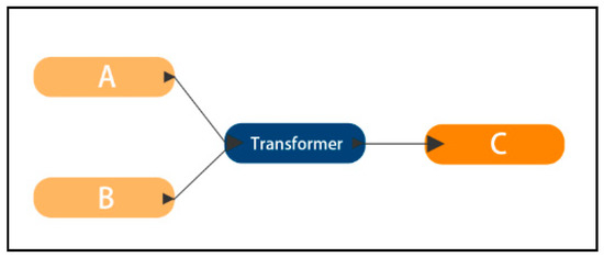 The Feature Manipulation Engine (FME) is a proprietary product from Safe Software. FME is a data integration and transformation tool for automating data processing workflows. It is the engine responsible for the spatial integration component. It can read and transform data from various popular formats. In addition, even though coding is not required to build the processes, it provides the ability to write programs using Python and R to extend the functionality of the workflow. This is very important, as it provides the option of designing the API using inbuilt functionality or using the programming language support to design an efficient process for the API to communicate with the spatial integration module. As a result, FME makes cross-platform development simpler with the availability of programming using Python, while allowing developers to create seamless user experiences for the end-users. In addition, it enables declarative data fetching where a client can specify exactly what data it needs from an API. As a result, the API allows for fine-grained insights about the data that is requested on the backend. As each client specifies exactly what information it is interested in, it is possible to gain a deep understanding of how the available data is being used. This can help in evolving an API and deprecating specific fields that are no longer used. Figure 9 shows a generic workflow of how the FME works. In the example, it reads data from two sources, A and B, and integrates the data into one dataset C via built-in or customized transformation tools appropriate for the data sources and the desired outcomes.