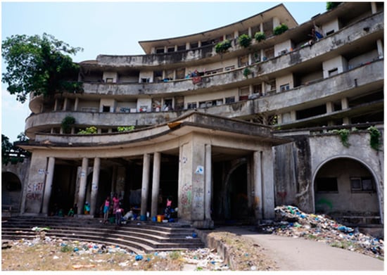 After the Portuguese Revolution of 1974, Mozambique became an independent state with joint growing pains. The communist party FRELIMO (Mozambique Liberation Front) came to power and used the “Grande Hotel” as a base to establish the communist state in the region. In the Mozambican Civil War (1977–1992), the hotel became a military base. In 1981, the city became part of a neutral zone controlled by the Zimbabwe Defense Force to secure Zimbabwe’s exports to the Border Corridor. The provision of security and aid has attracted refugees from the countryside [8]. The “Grande Hotel” was transformed into a refugee camp, and the soldiers were transferred to the battlefield. Since 1992, Mozambique has experienced stability and peace. Today, the port of Beira is rehabilitated. It is undergoing an economic expansion due to the transit of minerals to Asia [8].