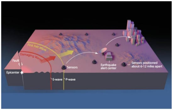 - Allen, R.M. The Potential for Earthquake Early Warning in Southern California. Science 2003, 300, 786–789. [Google Scholar] [CrossRef] [PubMed]