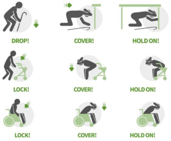 - FEMA/DHS. Ready Campaign FEMA/DHS. In Stay Safe During; U.S. Government: Washington, DC, USA, 2020. Available online: https://www.ready.gov/earthquakes#during (accessed on 25 January 2020).