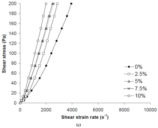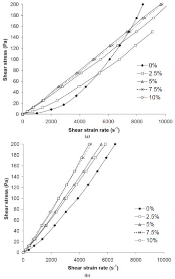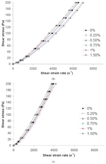 To ensure reliability of the test results, each of the reported yield stress–shear rate values corresponds to the average value of at least three measurements that had values deviating no more than 1% from the average value of the total measurements.