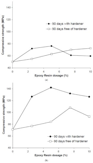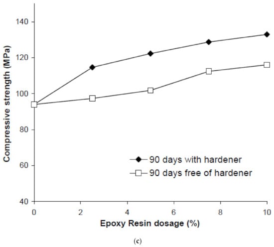 Latex can likewise be made by utilising waterborne epoxy resin (ER) emulsions. ER emulsions are a suitable solution as a restoration material for old damaged concrete structures. Additionally, they are widely used with cement and aggregate because their incorporation in concrete or mortar has many advantages, such as improved workability and reduced segregation, increased mechanical properties and bond strength, increased ductility, reduced water penetration, reduced shrinkage, high resistance to freezing–thawing cycles and high resistance to acid environments [24,30,31,32].