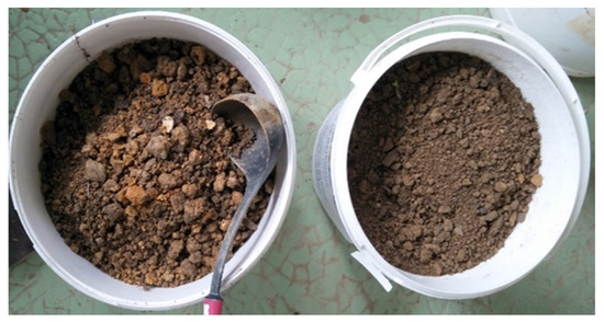 Mac-H has the capacity to continuously manufacture the self-compacting mortar (SCM) to backfill trenches on the sidewalks (urban areas) or banks (rural areas) and on the roads. SCM is a particular material that can pass through and fill the gaps of reinforcement and mold corners without any need for vibration and compaction during the placement process [7,8]. Two types of trench cuttings are considered, keeping in mind the origin and location of the site: one obtained from a site at the urban area, i.e., urban trench cutting (UTC), and the other one obtained from a site at the rural area, i.e., rural trench cuttings (RTCs). The nature of the recovered material is that they are partly granular and from urban areas, while mainly fine matrix (clay, silt, organic matter) materials are obtained in rural areas.