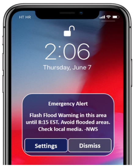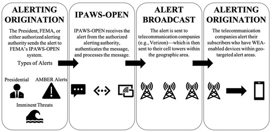 - Federal Communications Commission. “Consumer Guide.” Wireless Emergency Alerts, 19 December 2019. Available online: www.fcc.gov/sites/default/files/wireless_emergency_alerts_wea.pdf (accessed on 16 December 2021).
