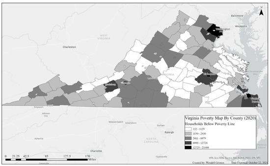 As illustrated by the darker areas in Figure 5 below, coastal Virginia communities contain high amounts of households below the poverty level. Coastal cities, including, but not limited to, Southampton, Franklin, and Surry contained some of the fewest households below the poverty line. In contrast, coastal cities, such as Virginia Beach, Norfolk, and Chesapeake all contained high amounts of households that were below the poverty line.