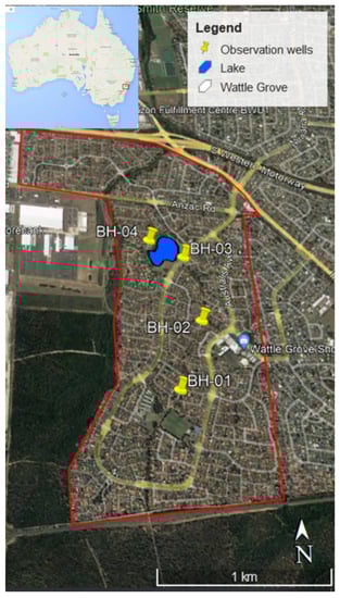 Study area map showing borehole locations and Wattle Grove Lake (adopted from [35]).