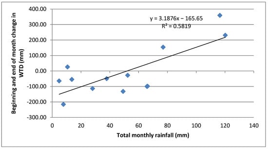 Monthly differences in the WTD (− indicates WTD increase and + indicates WTD reduction).