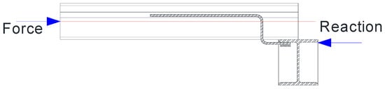 The connection capacities, depicted in Figure 9, demonstrated that for all bearing connections (Series I and II), the bar was more vulnerable under pushing forces, regardless of the load orientation (parallel or normal to the supporting beam) than under pulling forces. Under pushing axial forces, the eccentricity of the applied load with respect to the reaction point at the bottom of the beam flange (Figure 2), triggered an early bending/buckling of the connection bar at the bend. In the case of the specimens tested under parallel forces, the force was transferred to the supporting beam with an additional horizontal eccentricity (unrestrained portion), which resulted in the peak load being reached at very large displacements (60.3 mm). These load eccentricities caused a significant reduction in the capacity.