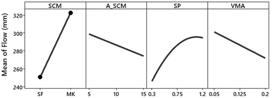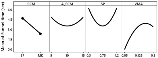- The type of SCM used has a considerable impact on the slump flow and funnel time. The use of MK as compared to SF increases the slump flow and decreases the funnel time.