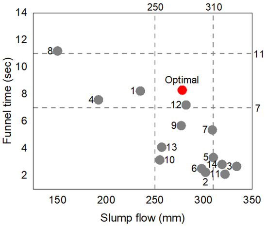 | Run | SCM | A_SCM | SP | VMA | Slump Flow (mm) | Funnel Time (s) |