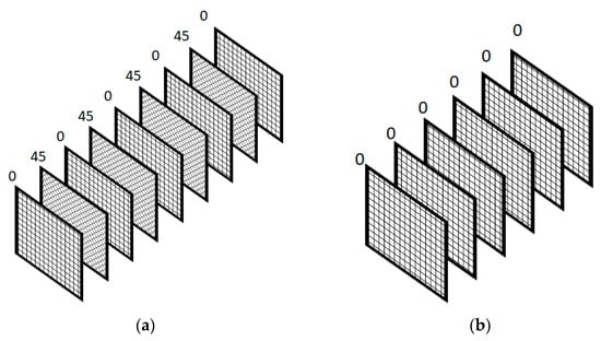 Laminated plate lay-ups: (a) bi-directional lay-up, (b) angle-ply lay-up.