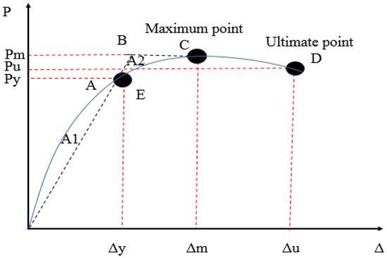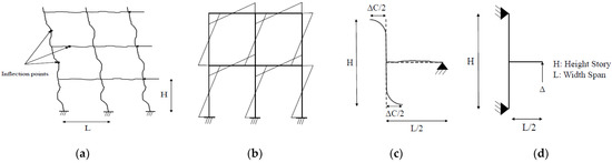High ductility in a moment resisting frame (MRF) was achieved by fabricating specimens with both unstiffened and stiffened end plate connections, with the latter using bolt extensions [42]. Diagrams illustrating the bending moment and deflection of an MRF under seismic load are shown in Figure 2.