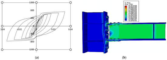 Additionally, a three-dimensional FE model was used to study the structural behavior of the moment resisting connections and the formation of the plastic hinges in steel beam–column connections under earthquake load, and the stiffness and resistance predictions were presented in detail, with a model validated via experimental results [38,39].