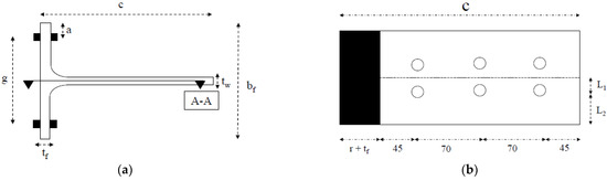 The second case was associated with the formation of two plastic hinges at the sections dealing with the flange-to-web connection and by the fracture of the bolts. The design resistance is given by Equation (6):