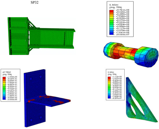 Since fractures or cracks were not explicitly modeled, response indexes could be used to determine the potential level of fracture. There are several commonly used indexes to assess potential fracture, including the pressure index, the Mises index, the triaxiality index (TI), the equivalent plastic strain index (PEEQ), and the rupture index (RI) [107]. An accumulation of high RI values indicated the location of the most potential fracture [108]. Initiating fractures could not be determined by RI. Bozkurt et al. [109,110,111] recommended using it to compare different configurations to determine the most likely to fracture. In many studies, researchers use the rupture index to evaluate the degree of damage to be experienced at beam-to-column connections [107,112,113,114,115].