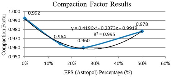 - The compaction factor decreases gradually as the ratio of the EPS increases; however, at a 50% ratio, the trend reverses and the value increases again rapidly.