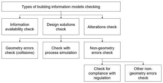 Among the existing systems, the main directions for checking information models of construction objects have gradually formed (Figure 1) [36,37,38,39].
