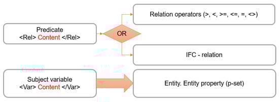A2. At stage A2, the content of tags is translated into the terminology of the Industry Foundation Classes (IFC) standard [57] to ensure the relationship between the rules and entities, properties, and relationships of the information model (Figure 5).
