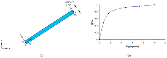 The force–deflection curve in the spring real constant table, as shown in Figure 6b, took into consideration the constitutive shear load–slippage relationship created by Ollgaard et al. [23]. Equation (8) provides the analytical relationship between the generic stud’s shear force Fj and slippage Sj.
