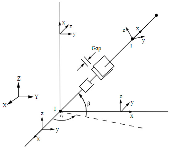 The interface between the steel flange and concrete slab is represented by using two-nodded gab elements, CONTACT178 (see Figure 7). With translations in the x, y, and z directions, the element has two nodes with three degrees of freedom each. The element can support coulomb friction in the tangential direction as well as compression in the contact normal direction. In this research, only the normal behavior of the contact element is intended. By setting the value of (KS) close to zero, the sticking stiffness, which symbolizes the stiffness in the tangential direction, is thus removed. The only material characteristic of this element is its zero coefficient of friction (μ). The purpose of using this contact element is to prevent penetration and ensure physical separation between the two surfaces in contact. The normal stiffness (kN) is calculated as the weakest stiffness of the surface in contact, the steel flange and concrete slab, using the following equation: