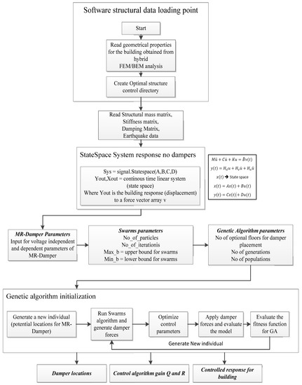 Figure 5 presents the overall control flow of the implemented software. The software begins by obtaining building data that results from the boundary element method and finite element method (BEM/FEM) analysis performed in a BEM environment [46]. The earthquake data is also loaded into the same environment.